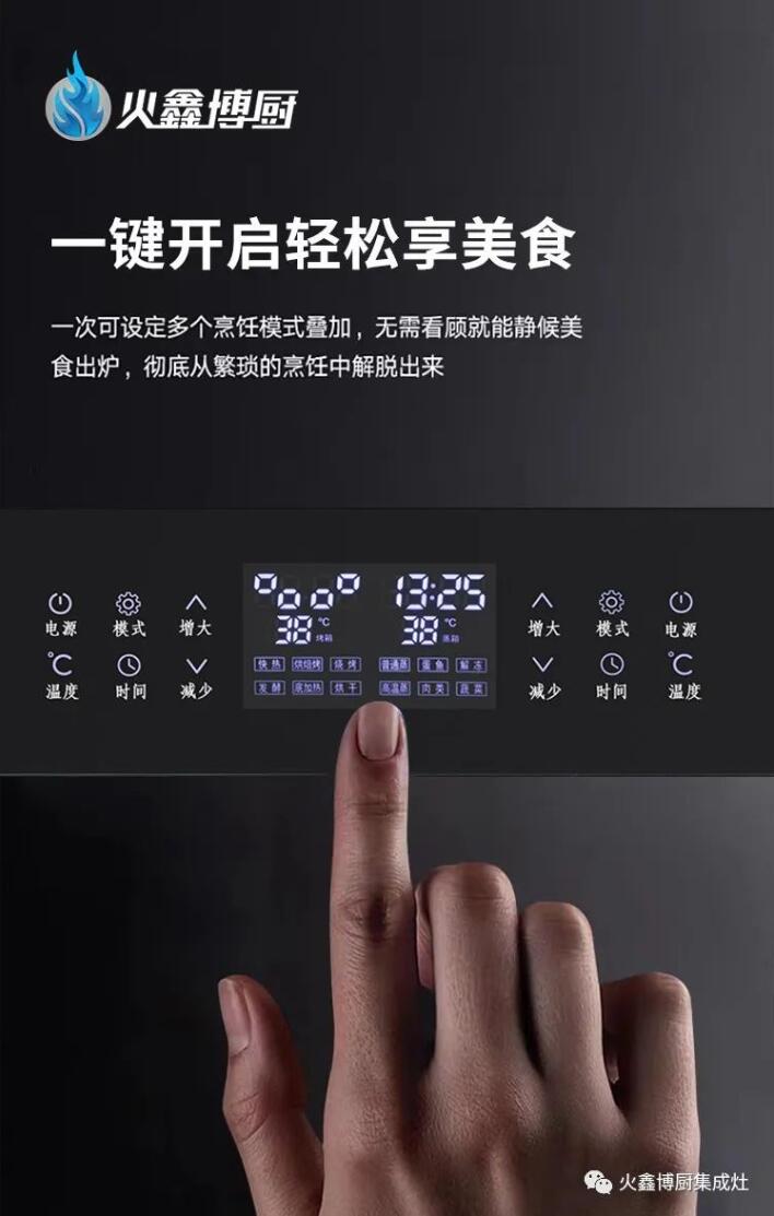火鑫博厨集成灶能省下更多厨房空间,达到真正的极简要求。嵌入式蒸烤箱设计更简洁美观,多达十种的烹饪模式能轻松满足年轻人下厨的要求。烧烤也能保持食物的鲜嫩,120°高温蒸可以轻松做出美味。闲暇时叫上三俩好友,在家中蒸烤美味喝着美酒,即便离家千里也能感受到家的味道。